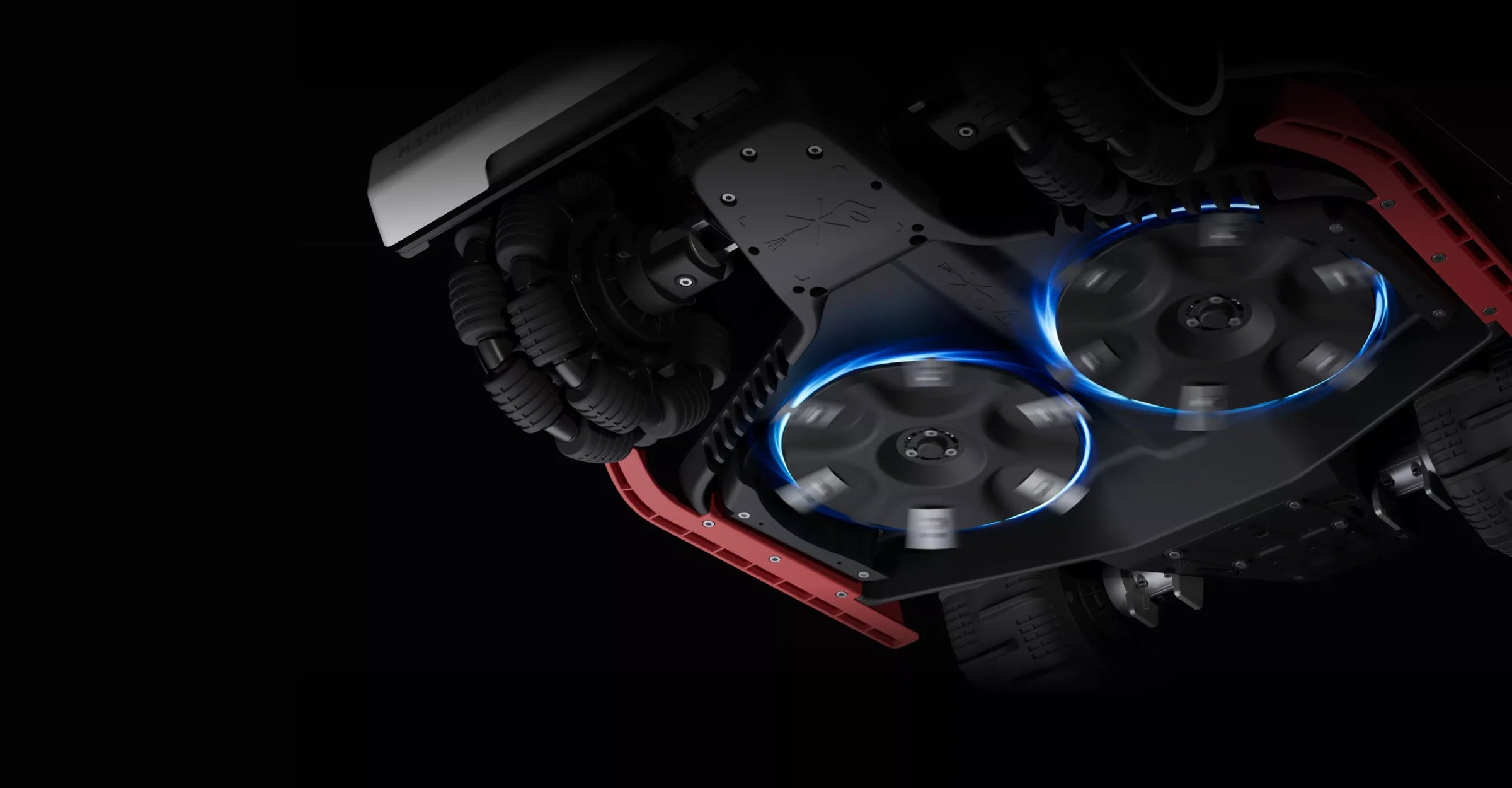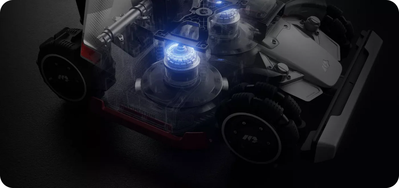 Două motoare de tăiere de 165W, cu discuri cu 6 lame, lucrează împreună cu viziunea AI a robotului LUBA 3 AWD pentru a ajusta automat viteza și puterea în funcție de densitatea ierbii, maximizând performanța de tăiere și eficiența energetică.