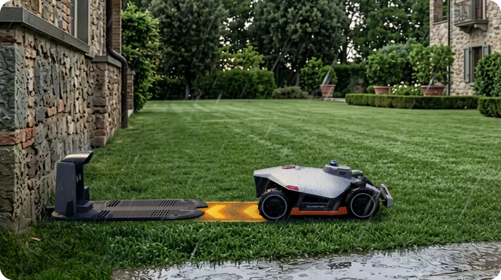 Se deplasează rapid și în siguranță între diferitele zone de cosire, navigând cu ușurință prin pasaje înguste, apoi revine automat la stația de încărcare.