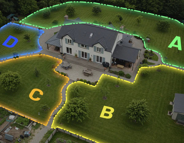 Poți gestiona până la 20 de zone de tundere, inclusiv curți față/spate, margini de alei sau zone interzise precum piscinele și straturile de flori. Harta inițială poate fi restaurată rapid printr-o singură acțiune, fără a fi necesară redesenarea completă a zonelor.