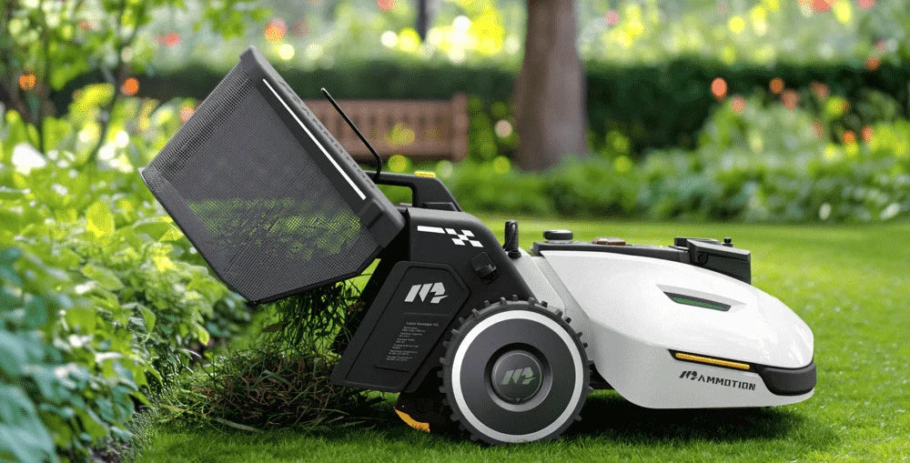 YUKA nu este doar un robot de tuns iarba — este o soluție completă pentru întreținerea gazonului. Cu ajutorul kitului de măturare ușor de atașat, YUKA adună frunze, resturi și iarba tăiată, eliminând inclusiv crengi cu diametrul de până la 3,5 cm.